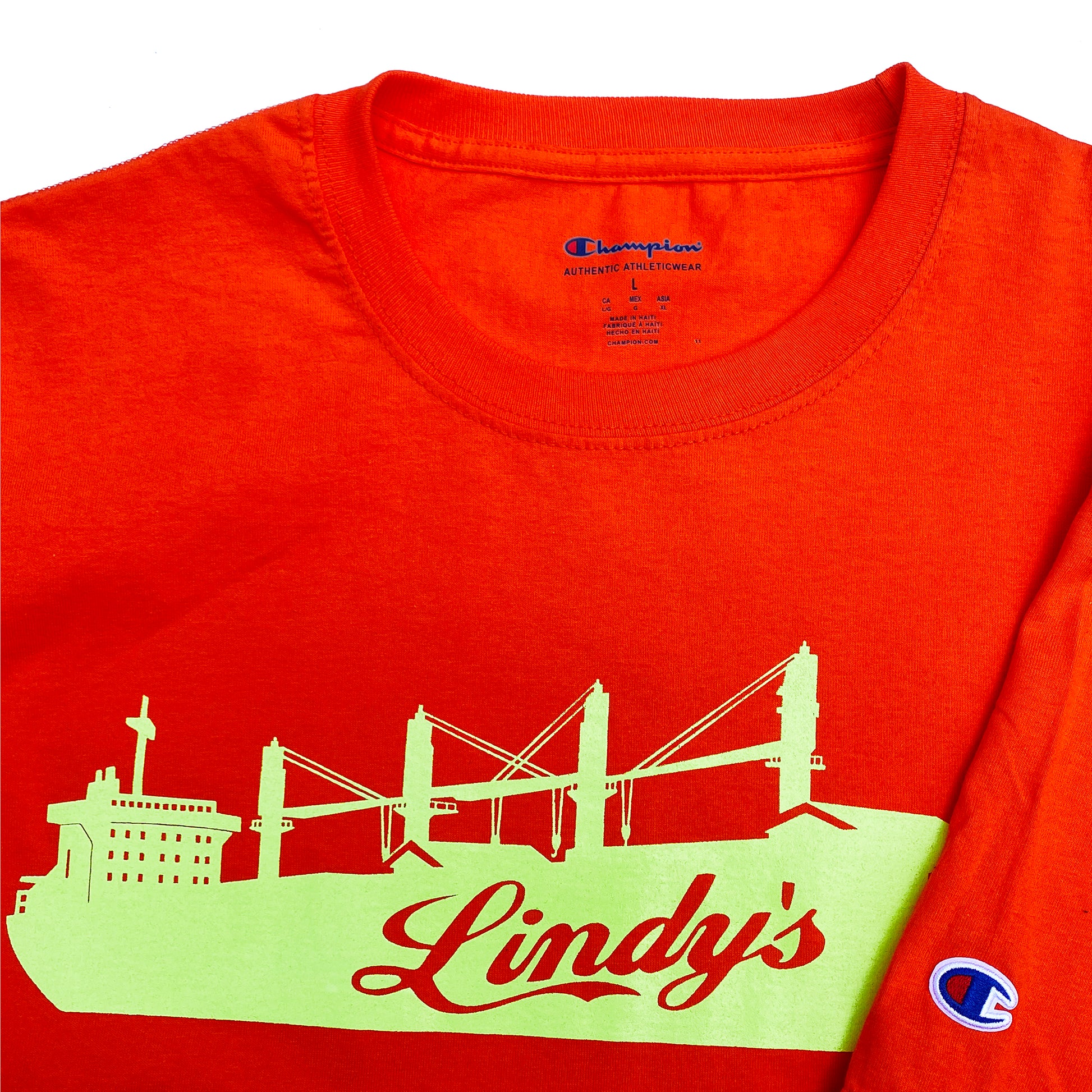 Work safely in this bright orange shirt with neon yellow high visibility printing. And let everyone know where you're heading after work. Print also glows in the dark! Made with quality Champion shirts.